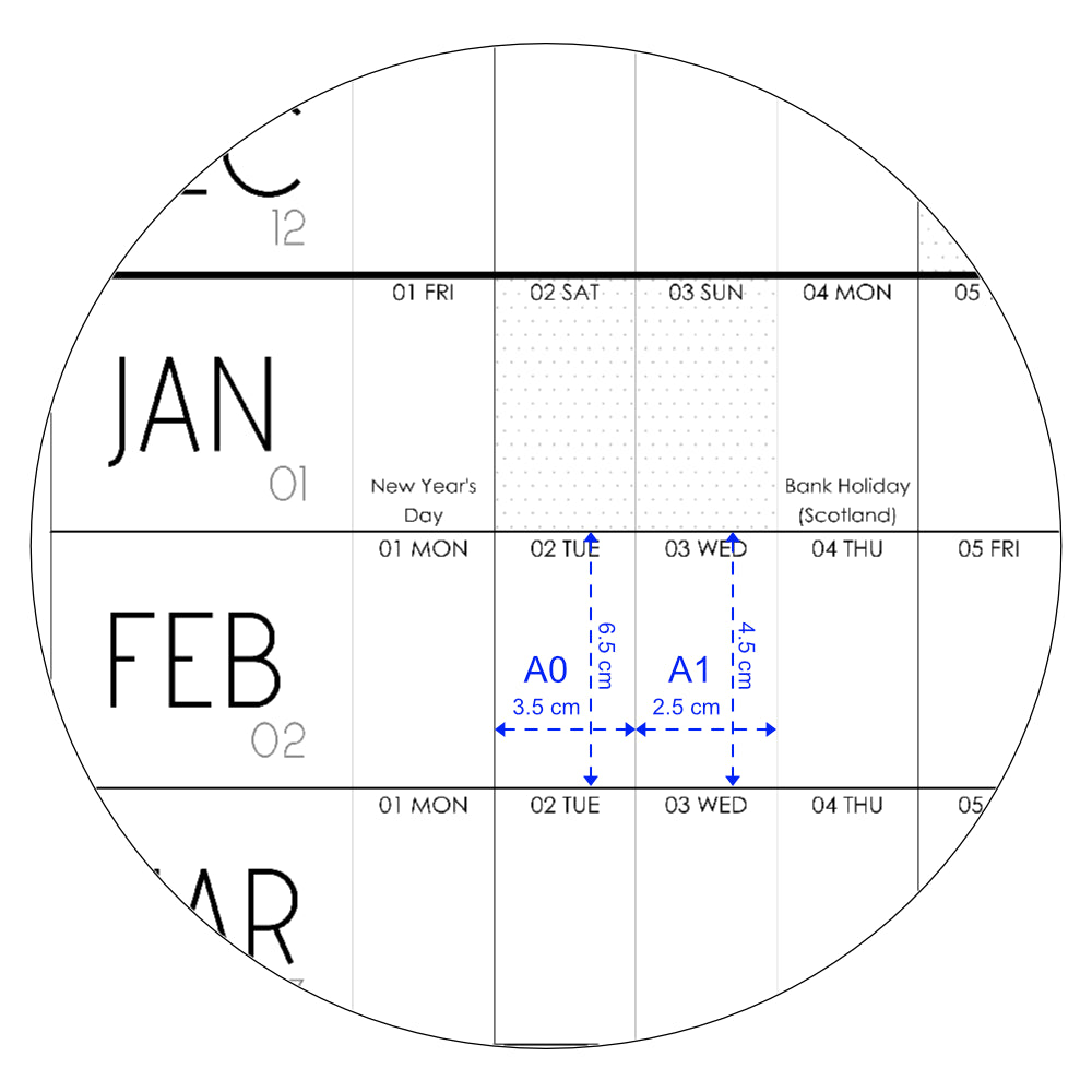 - At A1 paper size the boxes are 2.5 x 4.5cm