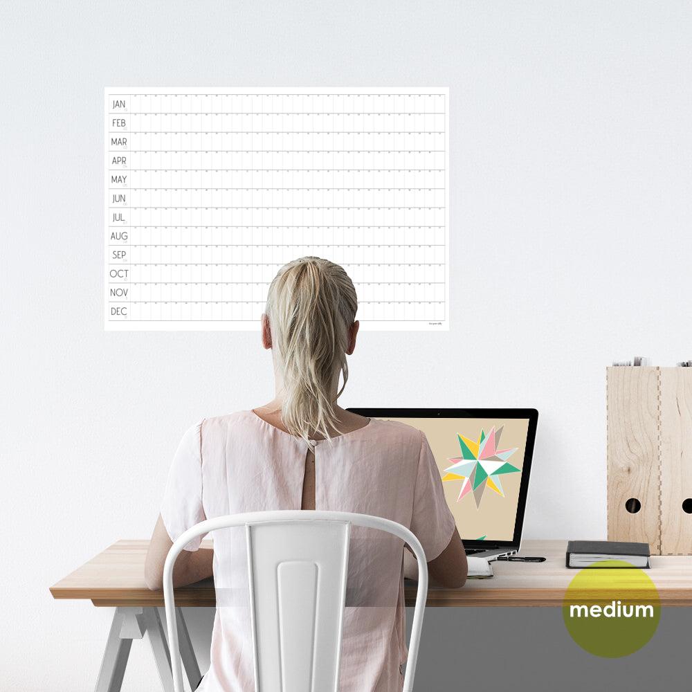 Check out our ‘any year’ wall planner with blank spaces for you to input your dates, plans, appointments, birthdays and more. This planner can be used in any year as it is not year specific.