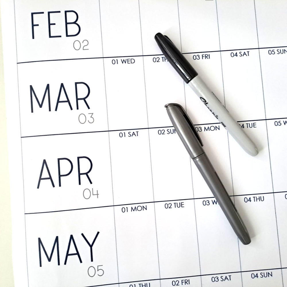 A great visual aid where you can block out periods of time and have the satisfaction of crossing off days as you countdown to an event. Simply attach to a wall with tape or tac and you are good to go.