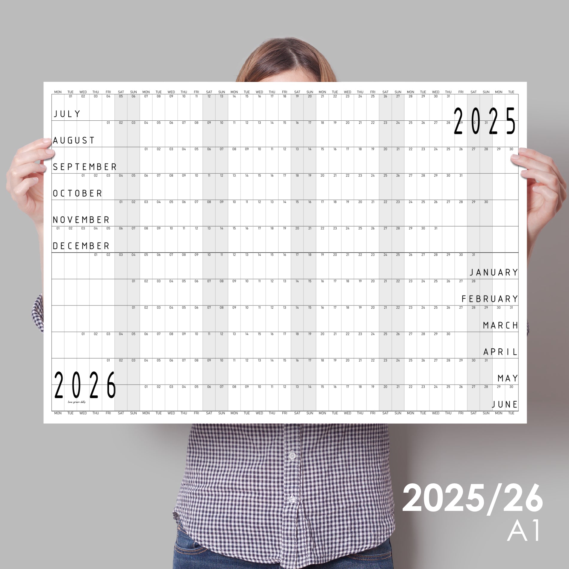 An extra large wall planner for the minimalist at heart. This planner is a mid-year calendar 2025/2026 and runs from July 1st 2025 to June 30th, 2026.