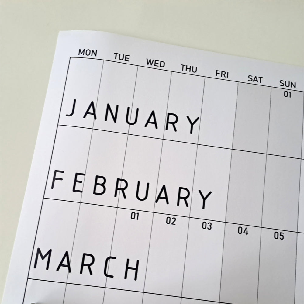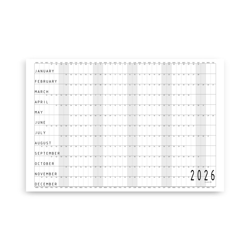 It is never to early to start planning and getting organised. This is an extra-large wall planner for the minimalist at heart. This planner is for the year 2026 with blank spaces for you to input your dates, plans, appointments, birthdays and the like. Pens, pencils, highlighters, sticky notes, washi tape; it is all up to you how you want to use it.