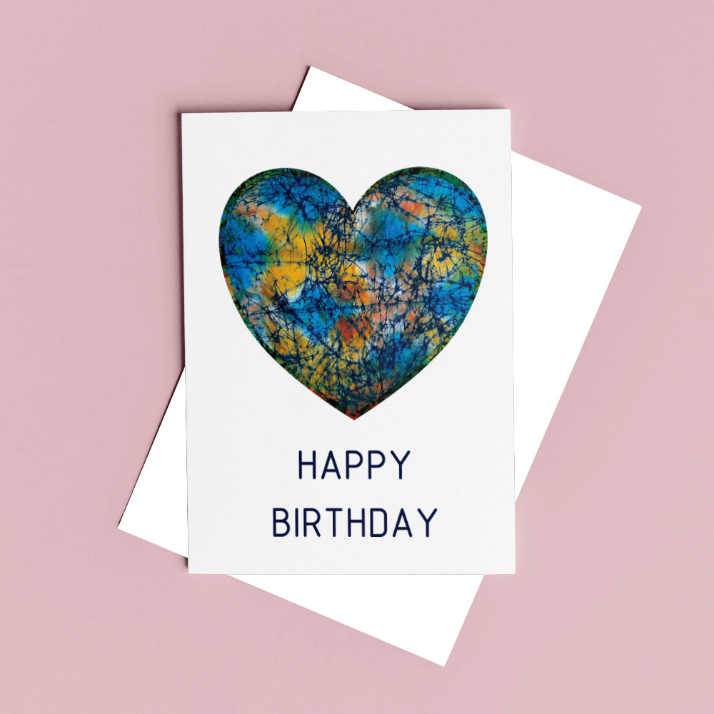 Happy Birthday Card, Afro Heart Birthday Card, Blue and Green, A6
