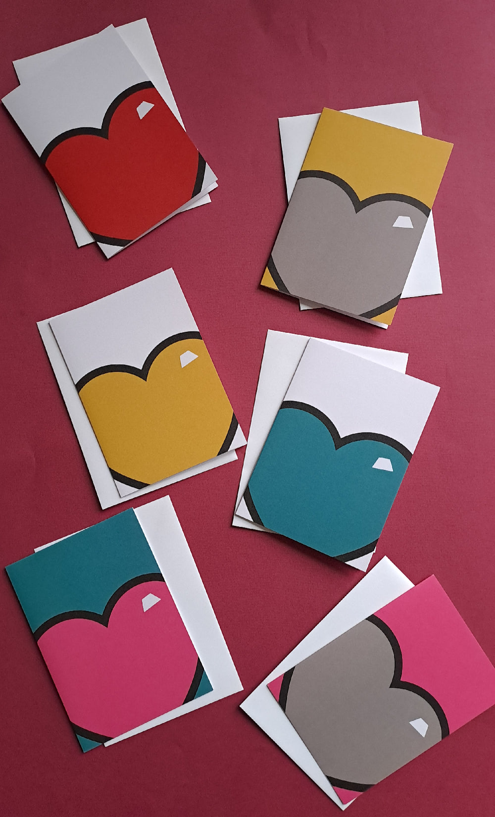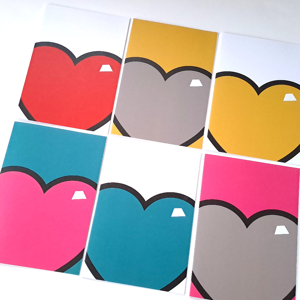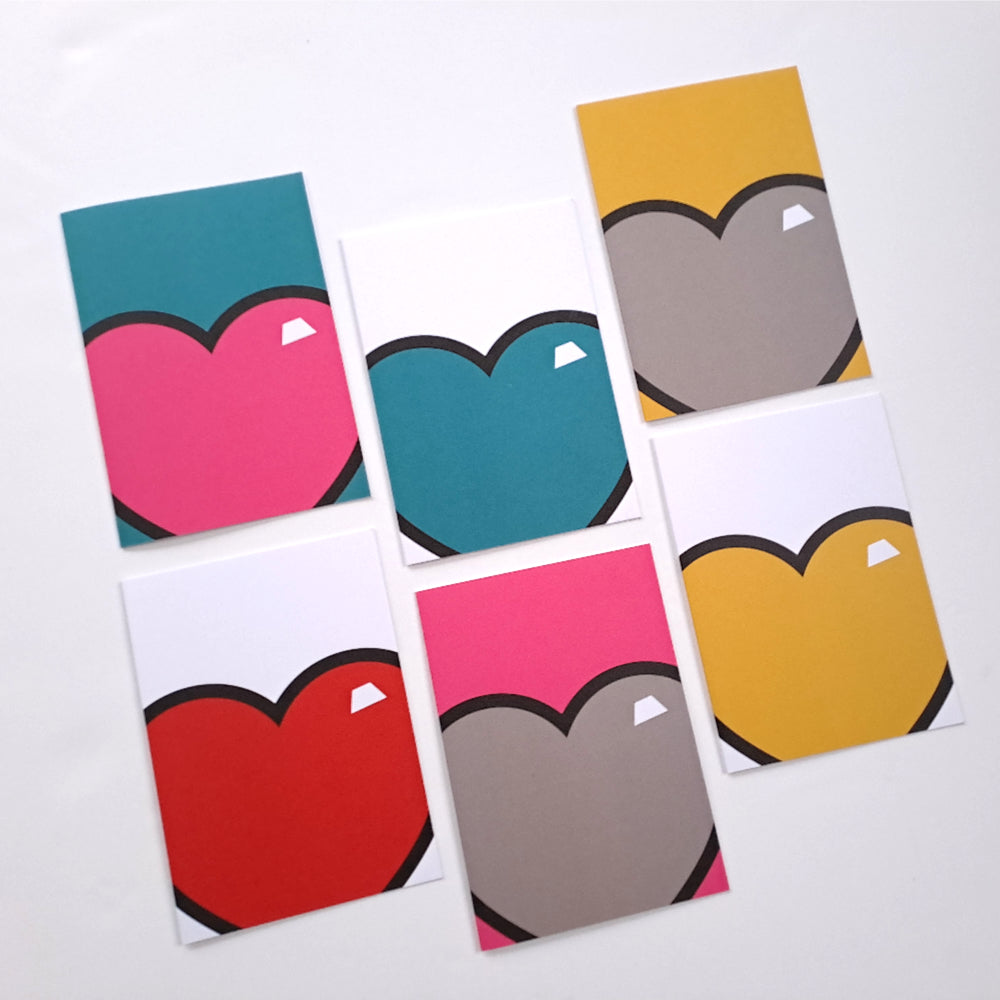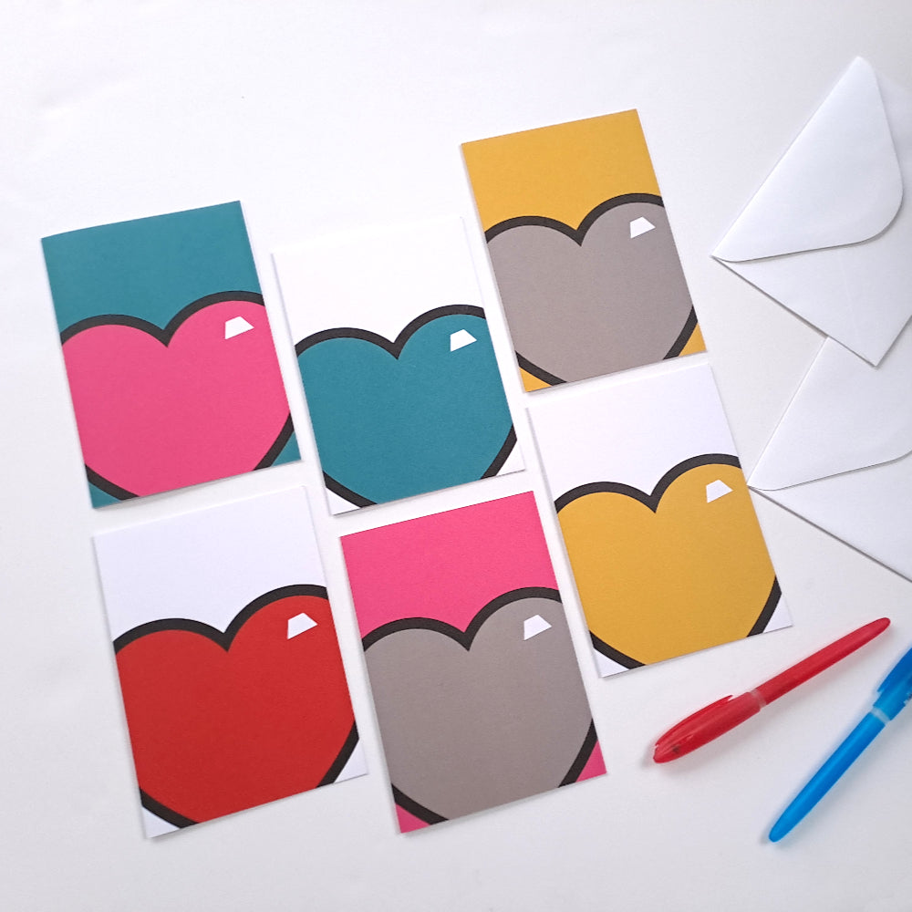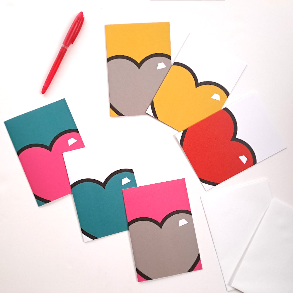 This pack of 6 juicy hearts greeting cards are designed with a nod to pop art.